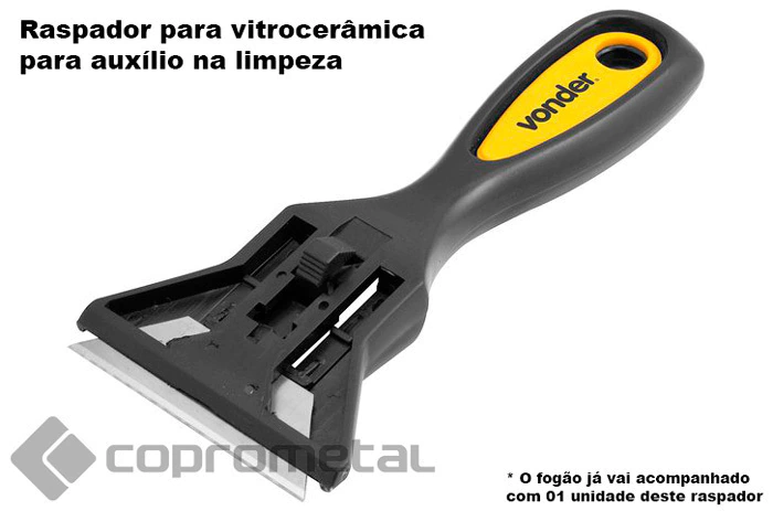 - Acompanha 01 raspador para chapa de fogão a lenha vitrocerâmica para auxílio na limpeza;