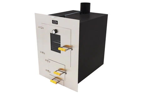 O forno é dotado de um registro na saída de fumaça que auxilia no controle da temperatura. A fornalha possui grelha de ferro fundido garantindo uma maior durabilidade e também cinzeiro para o recolhimento das cinzas produzidas pela queima da lenha.